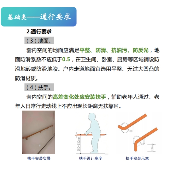 《导引》立足我省实际,系统整合了《山东省城镇老旧小区适老化改造指南》《既有住宅适老化改造技术标准》等多项技术规范,聚焦既有住宅套内空间、公共空间、小区环境等方面适老化改造需求,以“系统化、标准化、可操作”为原则,为居民自主更新改造既有住宅提供科学、实用的技术指导。