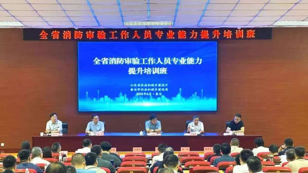 为贯彻落实建设工程消防审验“双优双提”行动部署安排,强化全省消防审验队伍建设,推动全省建设工程消防审验工作高质量发展、筑牢消防安全防线,6月19日至20日,省住房城乡建设厅在泰安举办全省消防审验工作人员专业能力提升培训班,住房城乡建设部建筑节能与科技司二级巡视员、消防审验监管处处长张晓军、省住房城乡建设厅二级巡视员刘春藏出席培训活动并讲话。各市住房城乡建设局和行政审批局70余名业务骨干参加线下培训,同时通过线上平台满足全省消防审验人员学习需求。