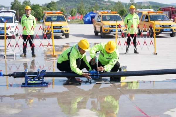 演练包含地震监测与烈度评估、燃气管道抢修、供水管道抢修、施工现场应急救援等4个科目,检验和提升了全省住房城乡建设系统地震应急响应处置能力。演练中,多项新技术、新装备的应用成为亮点。燃气管道抢修环节,抢险人员利用激光甲烷遥距检测仪对周边浓度进行检测,实现泄漏点远距离精准定位,搭配便携式手持甲烷检漏仪,形成“远距定位+近场复核”双保险,确保抢险高效安全。供水管道抢修环节,抢修队采用哈夫节安装技术,实现带压作业,大幅缩短堵漏时间,在短时间内恢复城市供水。建筑施工现场应急救援环节,救援人员远程操控配备红外热成像仪的破拆机器人,在废墟中检测有毒有害气体,实现建筑物残骸破拆,为生命通道开辟争取宝贵时间。