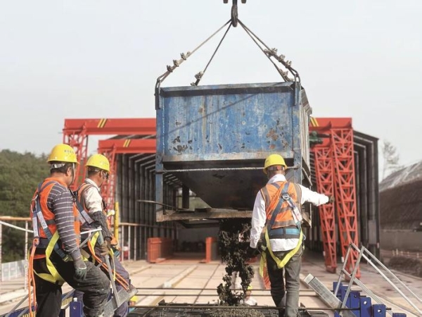 针对首片T梁浇筑节点,该标段强化施工统筹协调,细化施工方案,动态优化资源配置,积极组织安全技术交底,严格控制施工质量。施工过程中,现场技术人员紧盯钢筋绑扎、模板安装、混凝土浇筑各个环节,层层把控关键工序,严格落实安全标准化建设要求,实施施工预制全过程管控,加强现场临时用电、特种设备使用等重点环节安全监管,确保预制T梁施工的质量和安全性。