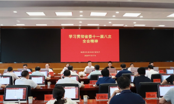 7月17日,省住建厅召开党组(扩大)会议,传达学习省委十一届八次全会精神,研究部署贯彻落实措施。厅党组书记、厅长朱子君主持会议并讲话。