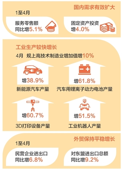 外部环境不确定性上升的背景下,4月份中国经济的表现格外引人关注。最新发布的成绩单,再次彰显了中国经济强大的“抗压能力”,为发展注入底气与信心。
