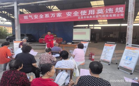 标典天然气公司主要领导带队对场站、辖区居民、商福、餐饮用户开展全面燃气安全排查;组织员工观看安全教育警示片,开展安全培训学习;并积极开展“六进”活动,利用展牌、宣传单、标语及现场普及燃气安全知识等形式“进社区”开展宣传活动。