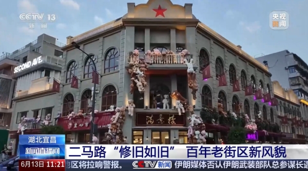 6月13日,央视《新闻直播间》播出推进城市更新在行动专题,聚焦湖北宜昌二马路历史文化街区。