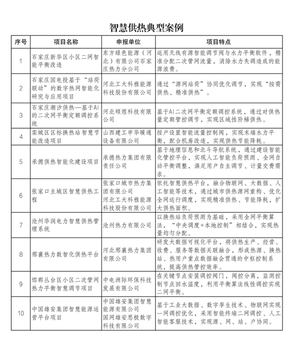 近日,省住房城乡建设厅发布推广27项供热行业典型案例。其中,包括14项清洁低碳和可再生能源供热典型案例、10项智慧供热典型案例、3项管网智能化泄漏监测案例。这些案例由各市推荐,省住房城乡建设厅组织专家评审筛选而出,具有创新性、实用性和可推广性。