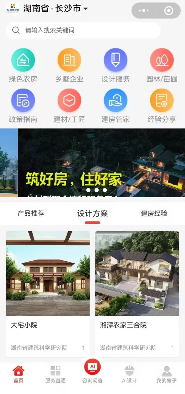 由长沙市住建局牵头打造的“好房好家”绿色农房信息服务平台,是以数字技术和人工智能为核心的新型农房建设服务平台。该平台深度融合智能建造与绿色建筑技术,通过数字化手段与装配式建筑的有效结合,为农村居民提供安全、智能、便捷的建房全流程服务。平台的推广应用不仅有效推动了农房建设向绿色化、智能化、宜居化方向发展,更为乡村振兴战略实施注入了强劲的科技动能。