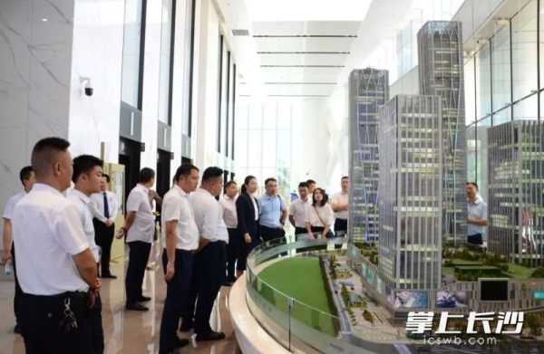 6月14日,学习团成员分赴梅溪湖晟通牡丹舸、湘江财富金融中心等项目进行实地考察。 学习团成员在梅溪湖晟通牡丹舸项目实地考察。 在晟通牡丹舸项目,学习团成员了解到,牡丹舸项目物业工作人员如何用行动实现了九年安全零事故。