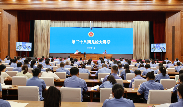 本期“龙检大讲堂”以“现场+视频”的方式进行,全省三级院干警分别在省检察院主会场和各市(分)院、基层检察院分会场收看讲座。