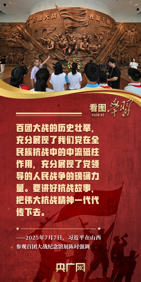 今年是中国人民抗日战争暨世界反法西斯战争胜利80周年,《看图学习》邀您一起跟随总书记的脚步,共同缅怀抗战先烈的丰功伟绩,继承和弘扬伟大抗战精神,为强国建设、民族复兴作出我们的新贡献。